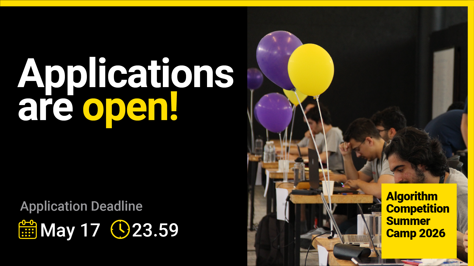 Applications for the Algorithm Competition Summer Camp 2026 will be open between April 24 and May 17, 23:59.